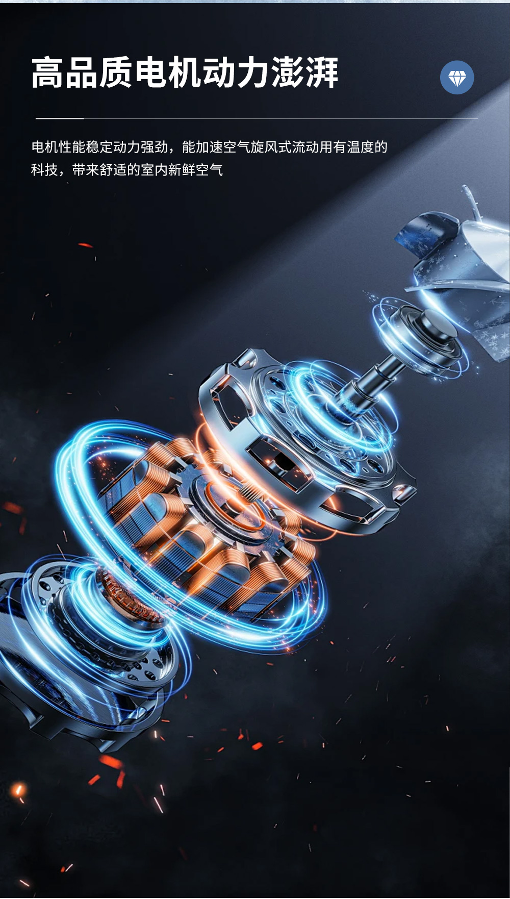 1. 低噪音送回風(fēng)循環(huán)系統(tǒng)、自適應(yīng)補(bǔ)充新風(fēng)換氣,確保生活空間的舒適干爽。